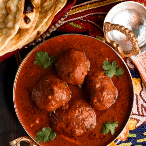 Balls made of pounded mutton and prepared in red gravy